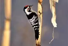 小斑啄木鸟,是啄木鸟科、啄木鸟属的小型鸟类,体长14-18厘米。额和颊白色,头顶雄鸟红色,雌鸟黑色。后颈至上背黑色,下背白色而具黑色横斑。两翅黑色具白色横斑。尾黑色,外侧尾羽具白色横斑。下体灰白色,…全部>>