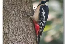 大斑啄木鸟隶属鸟纲鴷形目啄木鸟科。雄鸟头顶黑色,枕部红色,眼先、颊部和耳羽白色,颈部污白色,下嘴基部至后颈有1道黑色条纹并与从颈侧延伸到胸侧的黑色条带相连,背和两翼黑色,肩部具1个大的白色斑块,…全部>>