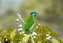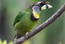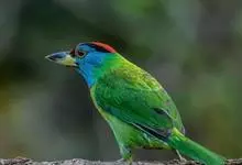 金喉拟啄木鸟,是须鴷科、拟啄木鸟属的鸟类。金喉拟啄木鸟为小型鸟类,体长19-24厘米。额深红色,头顶金黄色,后枕具一大块深红色斑,耳羽和头侧银灰色,上体草绿色,颏和上喉金黄色,下喉淡银灰色,…全部>>