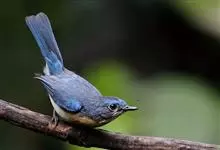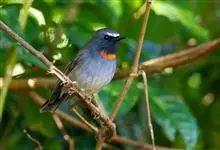 棕胸蓝姬鹟:属小型鸣禽,体长10-13厘米,体重6-10克,是一种体型很小的灰蓝及棕色鹟,雌雄羽色不同,雄鸟羽色艳丽,雌鸟羽色暗淡。雄鸟上体深蓝色,胸橙黄色,下腹灰白色。亚成鸟具褐色斑驳。…全部>>