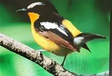 白眉姬鹟是小型鸟类,体长11-14厘米。雄鸟上体大部黑色,眉纹白色,在黑色的头上极为醒目。腰鲜黄色,两翅和尾黑色,翅上具白斑。下体鲜黄色。雌鸟上体大部橄榄绿色。腰鲜黄色,翅上亦具白斑。下体淡黄绿色。…全部>>
