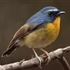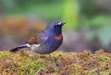 棕胸蓝姬鹟:属小型鸣禽,体长10-13厘米,体重6-10克,是一种体型很小的灰蓝及棕色鹟,雌雄羽色不同,雄鸟羽色艳丽,雌鸟羽色暗淡。雄鸟上体深蓝色,胸橙黄色,下腹灰白色。亚成鸟具褐色斑驳。…全部>>