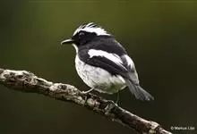 小斑姬鹟体长12厘米,体羽是黑白两色或褐色及白色。栖息于热带、亚热带的潮湿低地森林和山地森林。常单独或成对活动,多在树冠下层低枝处活动和觅食,也常飞到空中捕食飞行性昆虫,捉到昆虫后又落于较高的枝头上。…全部>>