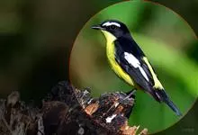 白眉姬鹟是小型鸟类,体长11-14厘米。雄鸟上体大部黑色,眉纹白色,在黑色的头上极为醒目。腰鲜黄色,两翅和尾黑色,翅上具白斑。下体鲜黄色。雌鸟上体大部橄榄绿色。腰鲜黄色,翅上亦具白斑。下体淡黄绿色。…全部>>