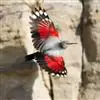 红翅旋壁雀:体重15-23克,体长120-178毫米。是一种体型略小的鸟类。尾短而嘴长,翼具醒目的绯红色斑纹。飞羽黑色,外侧尾羽羽端白色显著,初级飞羽两排白色点斑飞行时成带状。繁殖期雄鸟脸及喉黑色,…全部>>