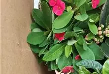 铁海棠为大戟科大戟属蔓生灌木植物;茎多分枝,具纵棱,呈旋转状;叶互生,通常集中于嫩枝上;每个花序基部边缘具微小的红色尖头;苞叶先端圆且具小尖头,无柄,上面鲜红色,下面淡红色;苞片丝状;子房光滑无毛,…全部>>