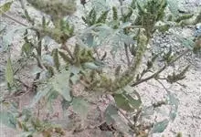皱果苋是苋科苋属一年生草本植物。茎直立,有不明显棱角,稍有分枝,绿色或带紫色,单叶互生,叶片卵形或卵状长圆形;穗状花序组成顶生圆锥状花序,苞片及小苞片披针形;胞果扁球形;种子近球形;花期6-8月,…全部>>