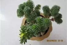 小松绿是景天科景天属植物,多肉植物,植株低矮,多分枝,株型近似球状,新枝浅绿色,以后逐渐转为灰白色,肉质叶近似针状。枝条下部的老叶容易干枯,贴在枝干上,形成类似松树皮般的龟裂,数月才脱落,…全部>>