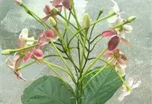 使君子 Jongkind)是使君子科、使君子属攀援灌木,叶对生,椭圆形,两面均被灰白色柔毛。穗状花序,倒挂下垂。花期夏秋。果有五棱,熟时黑色,种子白色。分布于印度、缅甸、菲律宾和中国。喜温润,深根性,…全部>>