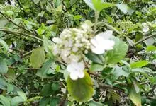 蝴蝶戏珠花 Miq.)是荚蒾科荚蒾属植物。落叶灌木,高达3米;当年小枝浅黄褐色。叶较狭,宽卵形或矩圆状卵形,有时椭圆状倒卵形。花序直径4-10厘米,外围有4-6朵白色、木型的不孕花。果实先红色后变黑色,…全部>>