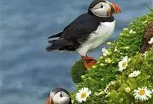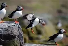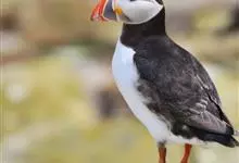 角嘴海雀,是海雀科、角嘴海雀属的中型海鸟,体长32-41厘米,嘴短而粗呈圆锥状、橙色。夏羽上嘴基部有一个三角形的突出物,形状如角。头两侧各有两条由白色丝状饰羽组成的纵带,分别位于眼上和眼下后方的头侧…全部>>
