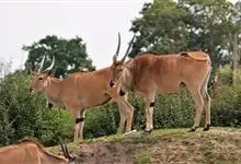 非洲野水牛:共有5个亚种。头体长2.1-3.4米,身高1-1.7米,体重300-900千克。胸膛宽阔,四肢粗壮,头大角长,雄性的角从头部向外和向下扩散,在一些雄性中,角通过覆盖头部的大盾连接。头顶的…全部>>
