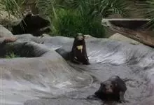 马来熊,是食肉目熊科马来熊属哺乳动物。体胖颈短,眼睛和耳朵小;头部短圆;全身乌黑光滑;鼻唇周为棕黄色,裸露无毛;眼圈为灰褐色,趾基部连有短蹼;胸斑中央有一个毛旋,颈部周围的一圈皮肤极松弛,…全部>>