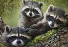 浣熊:食肉目、浣熊科的一种哺乳动物,成年体长40-65厘米,尾长20-40厘米,体重4-10千克,雄性稍大于雌性。体型较小。面部有黑色眼斑,形象滑稽,绰号“蒙面大盗”;尾部有5到7条黑白相间的环纹。…全部>>