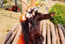 小熊猫:是小熊猫科、小熊猫属的一种动物。雌雄相似,不存在二态性。外形像猫,但较猫肥大,全身红褐色。圆脸,吻部较短,脸颊有白色斑纹。耳大,直立向前。四肢粗短,为黑褐色。尾长、较粗而蓬松,…全部>>