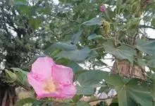 木芙蓉,锦葵科木槿属落叶灌木或小乔木。小枝上有细绒毛;叶片为卵状心形,托叶为披针形,常早落;花单生,花萼为钟形,花冠初为白色或淡红色,后逐渐变为深红色;果实为扁球形,有淡黄色的毛附着。花期8到10月。…全部>>