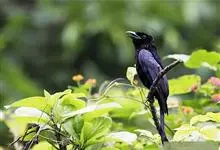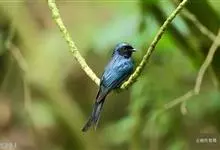 发冠卷尾是中型鸟类,体长28-35厘米。通体绒黑色缀蓝绿色金属光泽,额部具发丝状羽冠,外侧尾羽末端向上卷曲。栖息于海拔1500米以下的低山丘陵和山脚沟谷地带,多在常绿阔叶林、次生林或人工松林中活动。…全部>>
