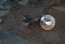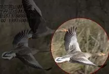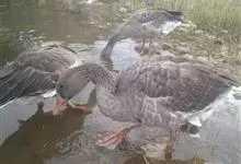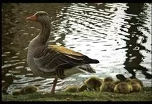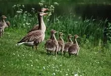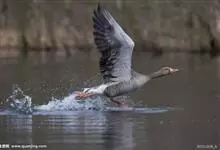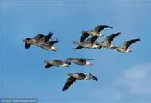 灰雁:体长70-90厘米,翼展147-182厘米,体重2.5-4千克,寿命17年。体大而肥胖。嘴、脚肉色,上体灰褐色,下体污白色,飞行时双翼拍打用力,振翅频率高。脖子较长。腿位于身体的中心支点,…全部>>