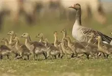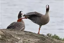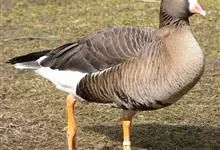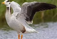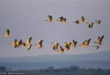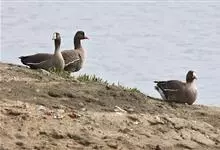 灰雁:体长70-90厘米,翼展147-182厘米,体重2.5-4千克,寿命17年。体大而肥胖。嘴、脚肉色,上体灰褐色,下体污白色,飞行时双翼拍打用力,振翅频率高。脖子较长。腿位于身体的中心支点,…全部>>
