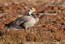 斑头雁是雁形目鸭科雁属鸟类,又称白头雁、黑纹头雁。通体大都灰褐色,头和颈侧白色,头顶有两道黑色带斑;虹膜暗棕色,嘴橙黄色,嘴甲黑色,脚和趾橙黄色;背部淡灰褐色,羽端缀有棕色,形成鳞状斑;颏、喉污白色,…全部>>