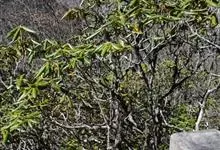 大白杜鹃是杜鹃花科杜鹃花属的常绿灌木,高可达5米。幼枝绿色,无毛;叶厚革质,长圆形或圆状倒卵形,先端钝或圆,基部楔形;总状伞形花序顶生,花序轴疏生白色腺体,花梗粗,具白色有柄腺体,冠宽漏斗状钟形,…全部>>