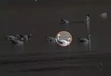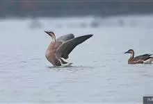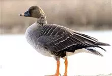 灰雁:体长70-90厘米,翼展147-182厘米,体重2.5-4千克,寿命17年。体大而肥胖。嘴、脚肉色,上体灰褐色,下体污白色,飞行时双翼拍打用力,振翅频率高。脖子较长。腿位于身体的中心支点,…全部>>