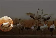 丹顶鹤:是鹤科、鹤属的一种大型涉禽,体长120-160厘米。颈、脚较长,通体大多白色,头顶鲜红色,喉和颈黑色,耳至头枕白色,脚黑色,站立时颈、尾部飞羽和脚黑色,头顶红色,…全部>>