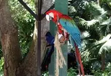 红绿金刚鹦鹉:是鹦鹉科、金刚鹦鹉属的大型攀禽。体长90-95厘米,翼展125厘米,体重1050-1700克,寿命80年。成鸟的头、颈部、胸部和翕两侧是美丽的红色羽毛。肩和三级飞羽绿色。背部,…全部>>