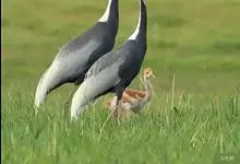 黑颈鹤:是鹤科、鹤属的大型涉禽,体长110-120厘米,体重4-6千克。颈、脚甚长,通体羽毛灰白色,头部、前颈及飞羽黑色,眼先和头顶前方裸露的皮肤呈暗红色,尾羽褐黑色。头顶,三级飞羽的羽片分散,…全部>>