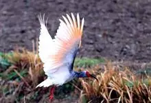 圣鹮头、颈黑色,身体白色,初级和次级飞羽尖端黑色。喙长且厚、黑色下弯,跗蹠与趾黑色。下背部有大量黑色纱状装饰羽,翼下裸露皮肤红色,体侧有时带黄褐色。亚成鸟的头、颈有羽毛,斑驳黑色带有白色纵纹,…全部>>