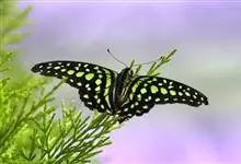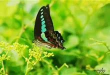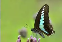 青带凤蝶Graphium sarpedon ,又名青凤蝶,是最普遍的中型凤蝶,飞行速度很快。青带凤蝶的翅膀中央有许多浅蓝色的斑点,很整齐地排列成一条直线。这些斑点由上而下逐渐变大,就像一条青色的带子。全部>>