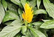 金苞花是爵床科、金苞花属的常绿草本植物。叶长圆形或披针形,先端渐尖,基部通常楔形,下面主脉被微柔毛;顶生穗状花序由密、短的总花梗组成,卵形苞片膜质,下部的近心形,小苞片披针形或匙形,与花萼等长,…全部>>