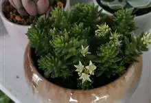 小松绿是景天科景天属植物,多肉植物,植株低矮,多分枝,株型近似球状,新枝浅绿色,以后逐渐转为灰白色,肉质叶近似针状。枝条下部的老叶容易干枯,贴在枝干上,形成类似松树皮般的龟裂,数月才脱落,…全部>>