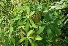 木薯,为大戟科木薯属的一种直立灌木,又名木番薯、树薯。木薯高1.5-3米;块根圆柱状。叶纸质,轮廓近圆形;裂片倒披针形至狭椭圆形;托叶三角状披针形。圆锥花序顶生或腋生,花萼带紫红色且有白粉霜。…全部>>