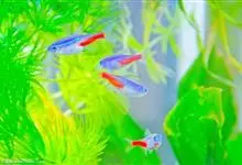霓虹灯鱼又被称为红绿灯鱼、红莲灯鱼。鱼纲,脂鲤科。原产亚马孙河上游。体长3~4厘米,体形较细,色泽美丽,体上部的绿线,因光线角度不同,有时显出蓝色,与体下部的红线极为协调,又与腹部全红的新红绿灯鱼〔…全部>>