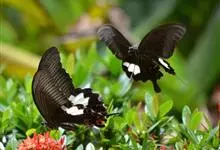 玉斑凤蝶Papilio helenus 别名白纹凤蝶,是凤蝶科凤蝶属美凤蝶亚属大型种类。雌雄同型;体翅皆黑色,后翅正面中室外有3个并列的白色斑,亚外缘有1列模糊的新月形红色斑,…全部>>