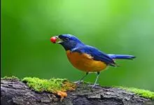 棕腹蓝仙鹟,Niltava vivida,鹟科仙鹟属的一种小型鸣禽,善在空中飞捕昆虫,中等体型18厘米,上体蓝,下体棕色,具黑色眼罩,胸橘黄渐变成臀部的皮黄色。国内分布于四川、云南、西藏和台湾等地。…全部>>