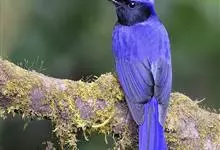 大仙鹟:体重34-38克,体长20-2厘米。是一种体型较大的深色鹟。雄鸟上体蓝色,头顶、颈侧条纹、肩块及腰部辉蓝,下体黑色。雌鸟橄榄褐色,头顶蓝灰,颈侧具闪辉浅蓝色块,喉具皮黄色三角形块斑。…全部>>
