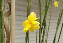 迎春花,木犀科素馨属的多年生木本植物,小枝细长直立或者呈拱形下垂;叶片呈卵形或椭圆形;花单生于叶腋处,苞片呈披针形或椭圆形,花冠为金黄色,花瓣通常为倒卵形或椭圆形;花期在6月。…全部>>
