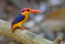 笑翠鸟,是翠鸟科笑翠鸟属的一种食鱼鸟,体长42-46厘米,嘴长8-10厘米,体重500克。是翠鸟家族中和大鱼狗同为体形最大的两种翠鸟之一。以其鸣声似狂笑而得名。笑翠鸟有一个白色的大脑袋,头顶有小棕帽。…全部>>