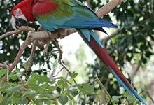 红绿金刚鹦鹉:是鹦鹉科、金刚鹦鹉属的大型攀禽。体长90-95厘米,翼展125厘米,体重1050-1700克,寿命80年。成鸟的头、颈部、胸部和翕两侧是美丽的红色羽毛。肩和三级飞羽绿色。背部,…全部>>