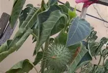曼陀罗,茄科曼陀罗属一年生大型草本植物,全株光滑。有臭气;叶呈广卯形,边缘具不规则波状浅齿裂;花单生于枝杖间或叶腋,直立,有短梗;花萼是筒状裂片三角形,颜色为白色或淡紫色;果实为蒴果卵状,…全部>>