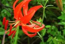 山丹是百合科百合属的多年生草本植物。鳞茎卵形或圆锥形,鳞片长圆形或长卵形,白色;叶散生茎中部,线形,边缘有乳头状突起;花单生或数朵成总状花序,花鲜红色,常无斑点,花被片反卷,…全部>>