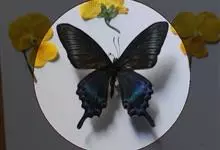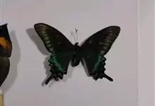 绿带翠凤蝶,又名深山凤蝶,为凤蝶科凤蝶属下的一种。分布于韩国、日本、中国台湾、中国大陆等地。翅黑色,满布金绿色鳞片。前翅亚缘具黄绿色横带纹。后翅外缘有6个略呈新月形的红斑,…全部>>