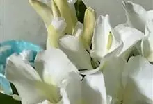 姜花又名野姜花。是姜科姜花属的多年生草本植物,茎高1-2米;叶片长圆状披针形或披针形,叶面光滑,叶背被短柔毛;穗状花序顶生,椭圆形,花芬芳,白色;蒴果卵状三棱形,微黄绿色;种子鲜红色,具橘红色的假种皮。…全部>>