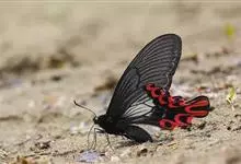 宽尾凤蝶是凤蝶科、宽尾凤蝶属昆虫。翅展115-130毫米。体、翅黑色,翅面散生黄色鳞片;前翅前缘色深,后翅外缘波状,波谷红色,。雄性外生殖器上钩突窄小,骨化。雌性外生殖器产卵瓣较长;交配孔宽大,…全部>>