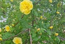 黄刺玫是蔷薇科蔷薇属的直立灌木。高2-3米;枝粗壮,密集;小叶片呈宽卵形或近圆形,边缘有圆钝锯齿,上面无毛;叶轴、叶柄有稀疏柔毛和小皮刺;花单生于叶腋,重瓣或半重瓣,呈黄色;花梗长1-1.5厘米,无毛,…全部>>
