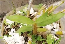 矮石斛:茎直立或斜立,粗短,纺锤形或短棒状,具许多波状纵条棱和2-5节。叶2-4枚,近顶生,革质,舌形,卵状披针形或长圆形。总状花序顶生或近茎的顶端发出,具1-3朵花;花开展,除唇瓣的中裂片金黄色和…全部>>