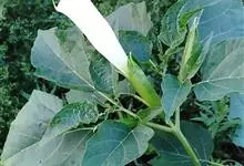 曼陀罗,茄科曼陀罗属一年生大型草本植物,全株光滑。有臭气;叶呈广卯形,边缘具不规则波状浅齿裂;花单生于枝杖间或叶腋,直立,有短梗;花萼是筒状裂片三角形,颜色为白色或淡紫色;果实为蒴果卵状,…全部>>