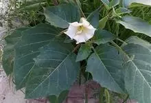洋金花是茄科曼陀罗属植物,一年生草本植物,全株近于无毛。茎直立,圆柱形,高30~100cm,基部木质化,上部呈义状分枝。叶互生,上部的叶近于对生;叶柄长2~6cm,表面被疏短毛;叶片卵形、长卵形或心形,…全部>>